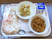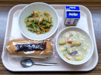 コーンマヨネーズトースト 牛乳 肉団子と野菜のスープ煮 ヨーグルトエネルギー81...