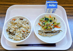 【全国学校給食週間(24日~30日)】 牛ごぼうごはん 牛乳 ししゃもから...