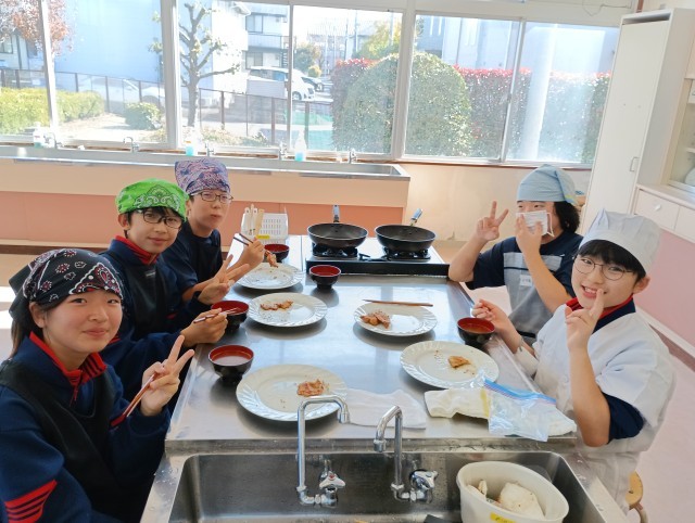 本日は1年生の家庭科の授業を参観しました。内容は調理実習で生姜焼きを作っていました。楽しそうに取り組む姿が素敵でした。