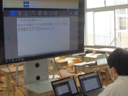 オンラインホームルームでは、出席や本日の学習の内容について確認をしています。