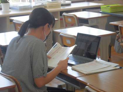1年生の総合的な学習の時間の授業では、情報モラルについてでした。特に、ネットの使い方の注意について確認しました。2年生の総合的な学習の時間の授業では、校外学習で計画している林業について調べ学習をしました。3年生は、各クラスで道徳の授業を行いました。