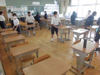 1年生は、期末テストを実施しました。お掃除までしっかりできました。