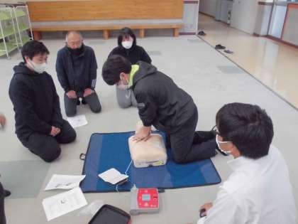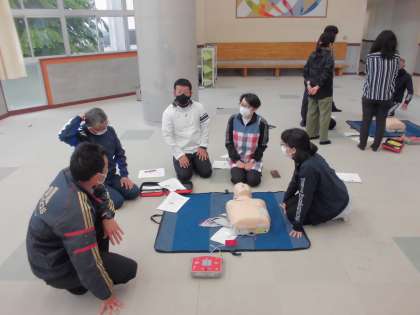 校内研修で先生方は、救急(心肺蘇生・AED)講習会を実施しました。特に、AEDの使い方を確認し、実技演習をみんなで確認しながら進めていました。適切に対応できるよう取り組みました。