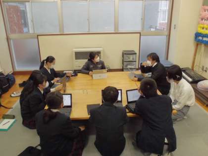 委員会活動の時間において、12月14日(水)に生徒会主催の「ネットいじめ防止授業」に向けての話合いをしました。当日の進行確認や活動内容について協力して進めていました。