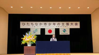 本日、市文化会館において、少年の主張大会が開かれました。本校からは、発表者1名、紹介者1名が参加しました。たくさんのご来賓の方々や他校の生徒たちが見守る中、とても立派な態度で発表することができました。穏やかな表情で落ち着いて、発表者のよいところを伝えていた紹介者、「共に歩もう 地域と部活」について、自分のことばで、自分の思いを会場にいた人たち全員にしっかりと伝えていた発表者、二人とも、とても素晴らしかったです。ひたちなか市教育長様から「最近話題の部活動の地域移行について、実際に部活動を行っている生徒の視点から、大人の考え方とはまた違った提案がたくさんなされていて、素晴らしいですね。」とご講評の言葉をいただきました。