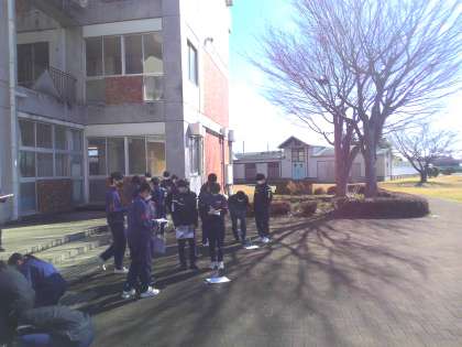 生徒たちは作成した計測器を地面に置きながら観察することで風向きを調べ、記録を行っていました。