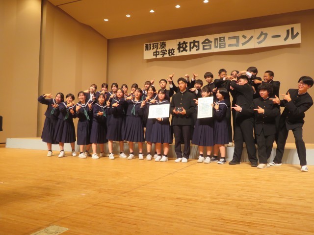 25日(土)に、雨が心配される中、ひたちなか市文化会館において、校内合唱コンクールが開催されました。午前中は、1年生と2年生の合唱、午後は、3年生の合唱と吹奏楽部、職員による発表が行われました。各学級の合唱では、これまでの練習の成果を存分に発揮し、中学生らしい立派な歌声が多くありました。これまでにない、盛り上がりを見せてくれ、生徒たちの熱量が感じられた1日でした。生徒たちには、今回の行事や経験を、これからの生活や次の行事に生かしていってほしいです。