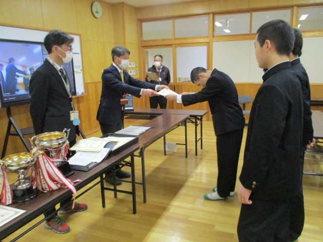 本校ではたくさんの生徒がスポーツや芸術等で活躍しており、表彰式で賞状が手渡されました。すばらしいです!
