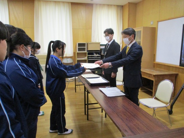 また、生徒会が新体制となり、その任命書も手渡されました。湊中をよりよくしていくため、力を発揮していくことを期待しています。
