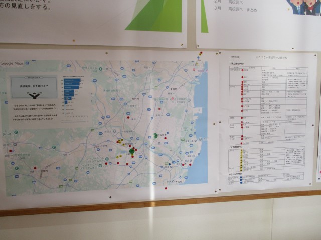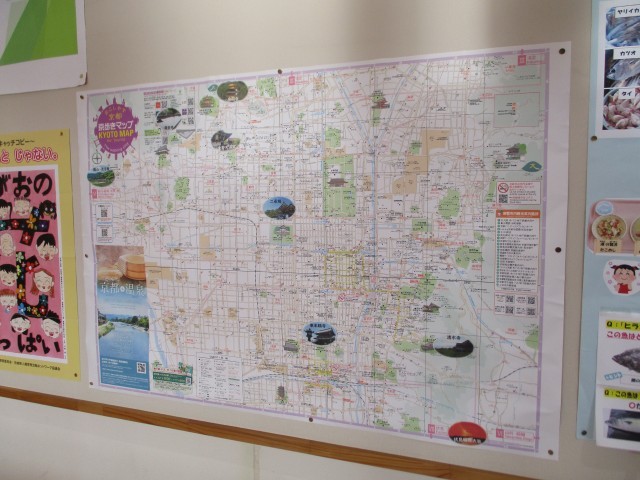 2年生は、高校の場所が記された地図や、京都市内の地図が掲示されています。
