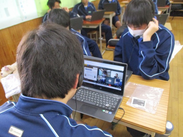 本日は、2年生でオンライン英会話レッスンが実施されました。