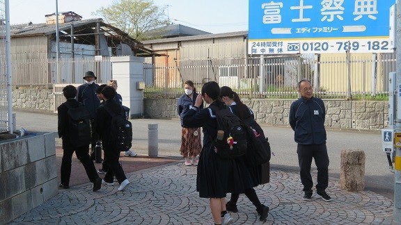 教育後援会の方々が、毎週火曜と金曜、朝早くから正門前に立ち、あいさつ運動を行ってくださっています