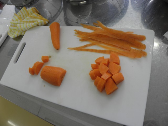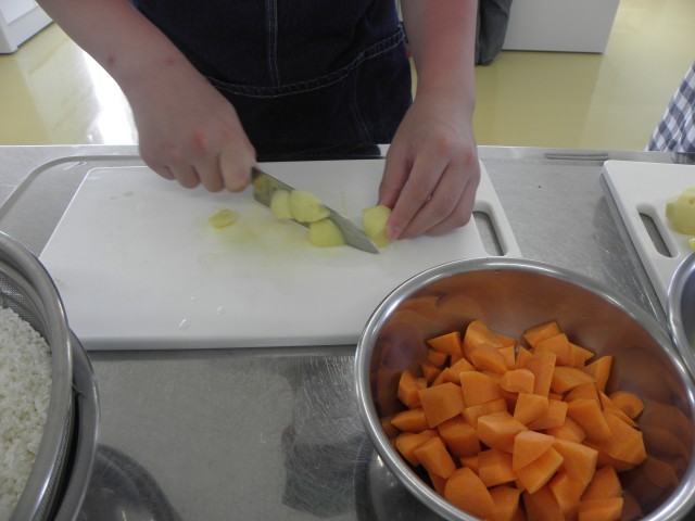 上手に包丁を使って野菜を切ったり、お米をといでご飯を炊いたりしました。