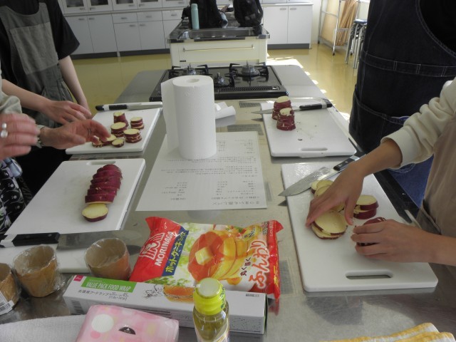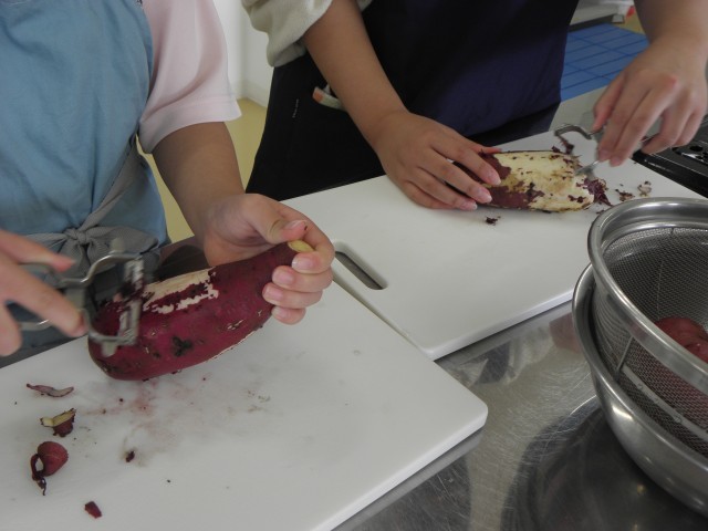10月28(火)に、いちょう広場では、市ふぁみりこらぼのキッチンスタジオで、さつまいもの調理実習を行いました。