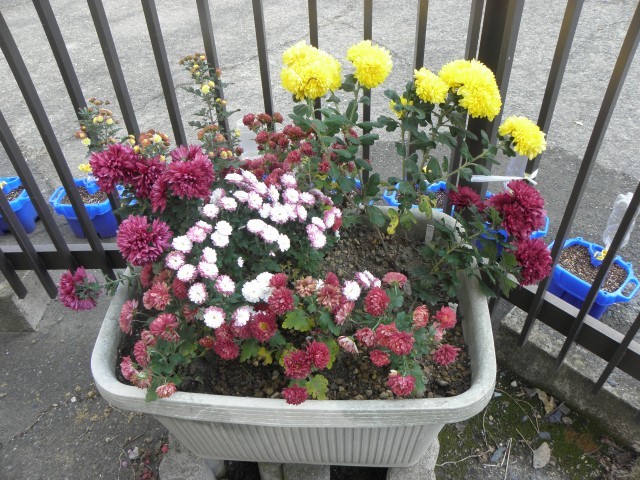師走に入り、朝晩の寒さも一段と厳しくなってきました。研究所の玄関前では、そんな寒さの中でも頑張って綺麗な菊の花が咲いています。