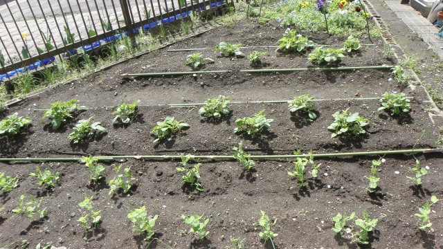4月9日、昨年度末にポットに種を植えた絹さやを広場の畑に植えました。1週間が過ぎ、少しずつつるが伸びてきたようなので、今後、支柱を立てていく予定です。また、絹さやと同様、ポットに植えたスナックエンドウもそろそろ畑に植える予定です。